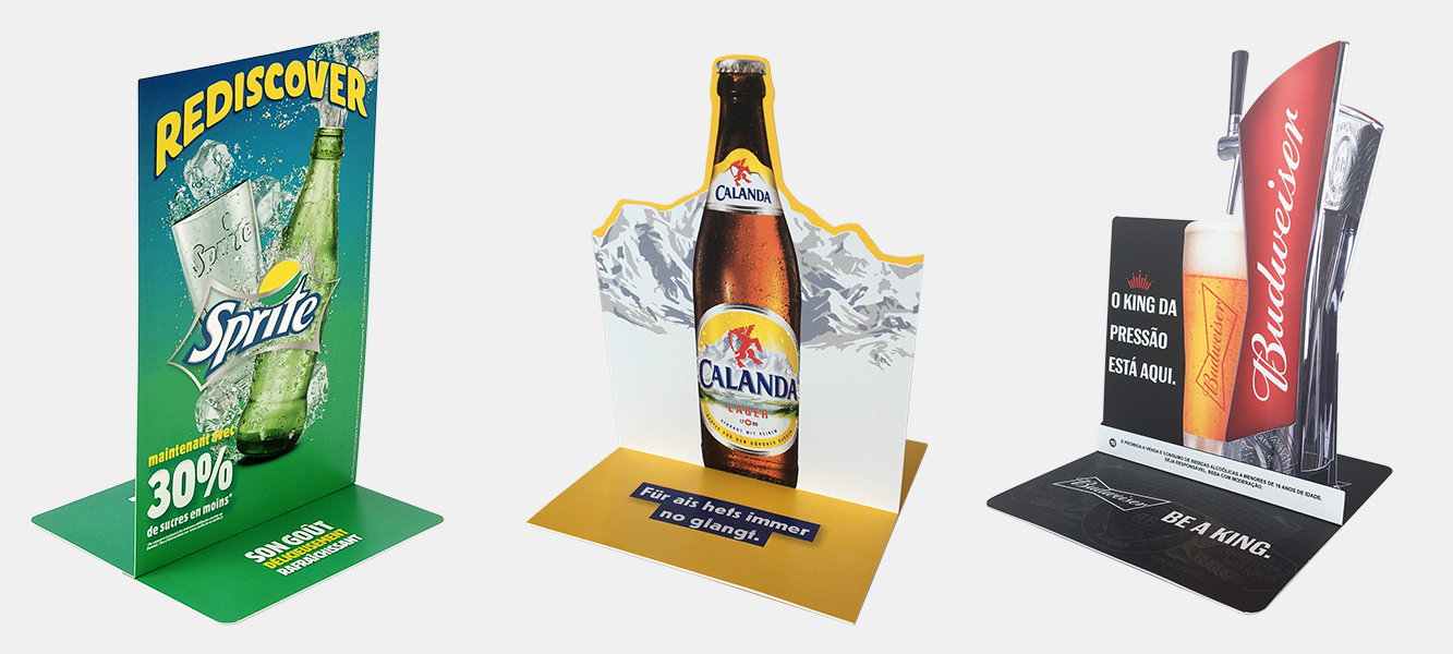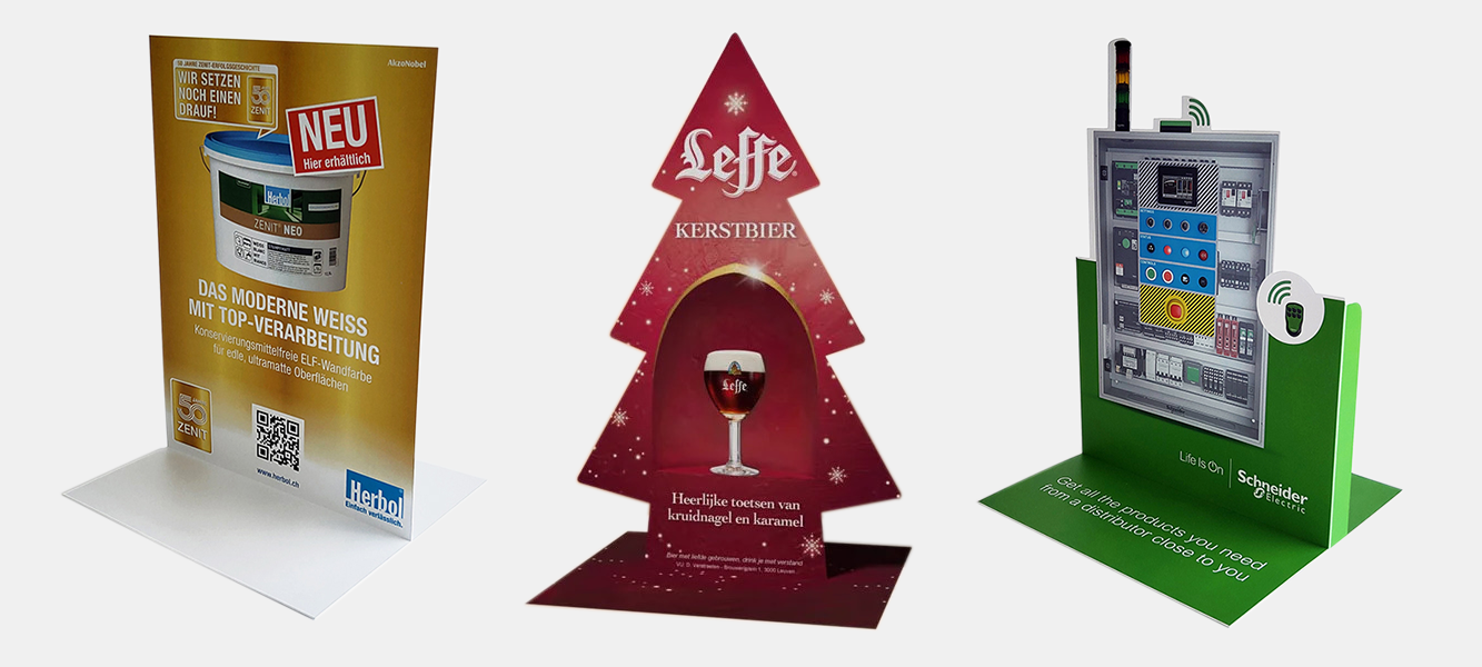 Stick'n Glide Tischaufsteller ist in verschiedenen Grössen erhältlich.